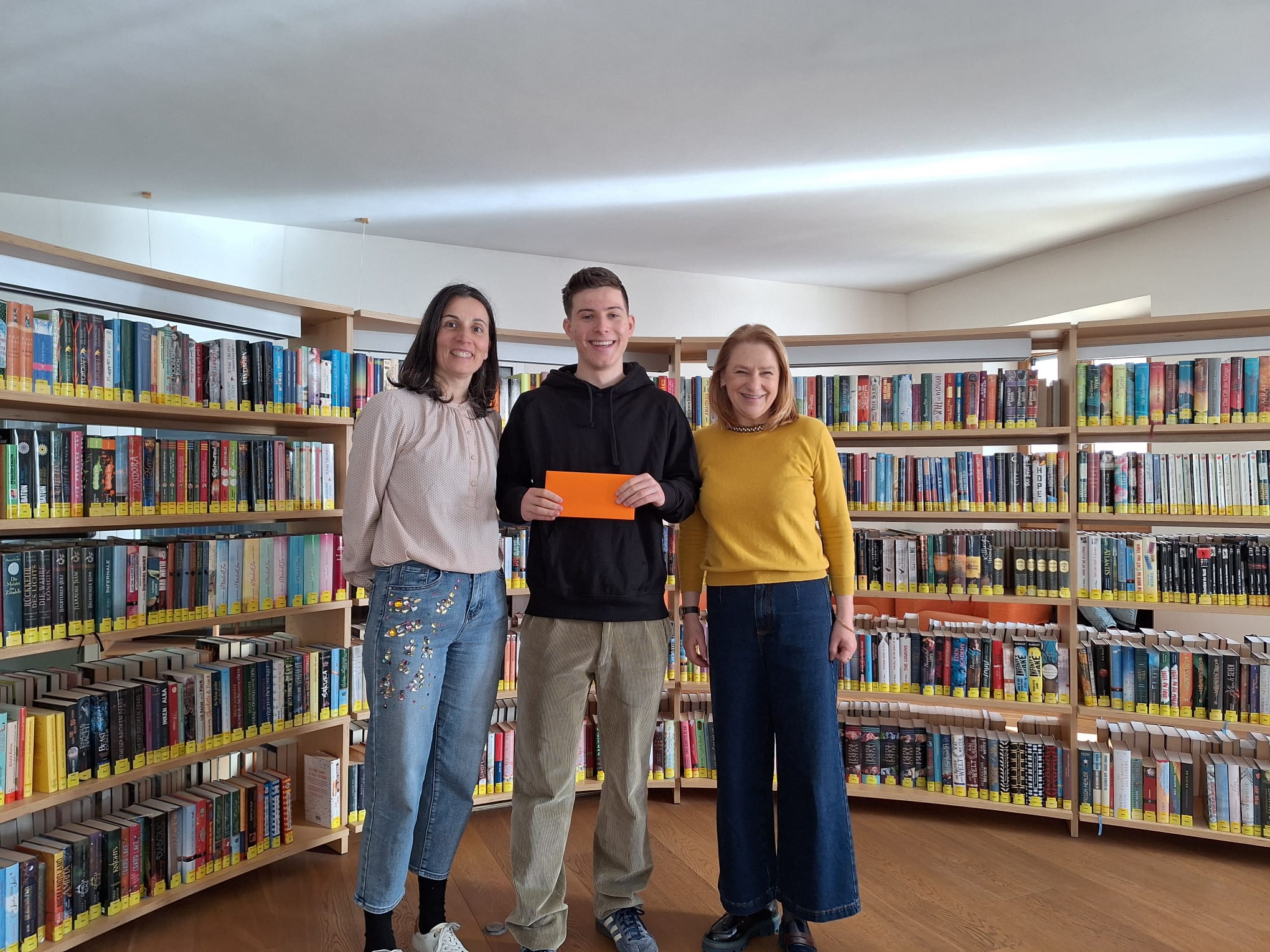 Prämierung in der Schülerbibliothek (v.l.n.r.): Tanja Rastner, Franz Theodor von Lutterotti und Prof. Eder