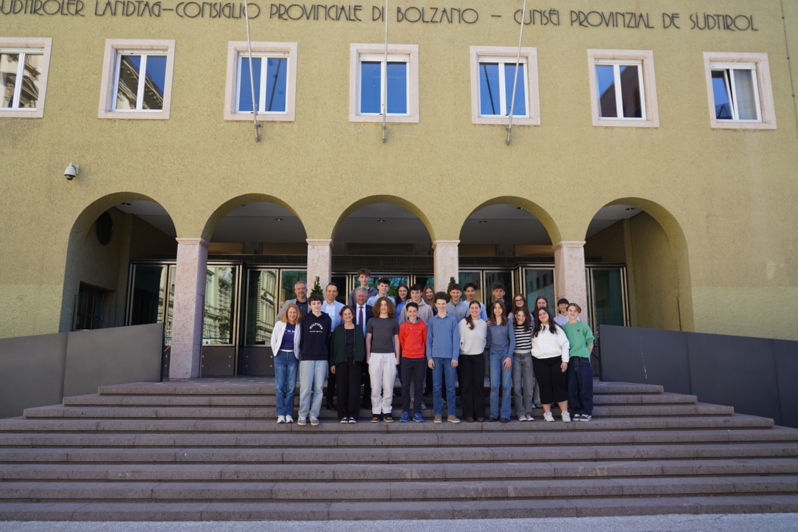 Nachdem vor einigen Wochen schon die 2. Gymnasium im Landtag gastiert hatte, um mit den Vertretern der verschiedenen Fraktionen ins Gespräch zu kommen, taten es ihnen die Schüler der 1. Klasse gleich. Begleitet von Prof. Elfriede Eder wurden sie am gestrigen Donnerstag im Sitzungssaal des Landhauses Nr. 1 vorstellig, um mit Franz Locher (SVP), Brigitte Foppa (Grüne), Sven Knoll (STF) und Paul Köllensperger (Team K) ins Gespräch zu kommen.